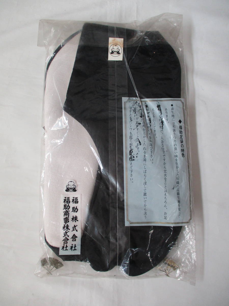 未開封 25.5cm 3枚コハゼ 黒朱子 福助 宝船足袋 (表裏底)綿100% 白底 レトロ 当時物 足袋 未使用 日本
