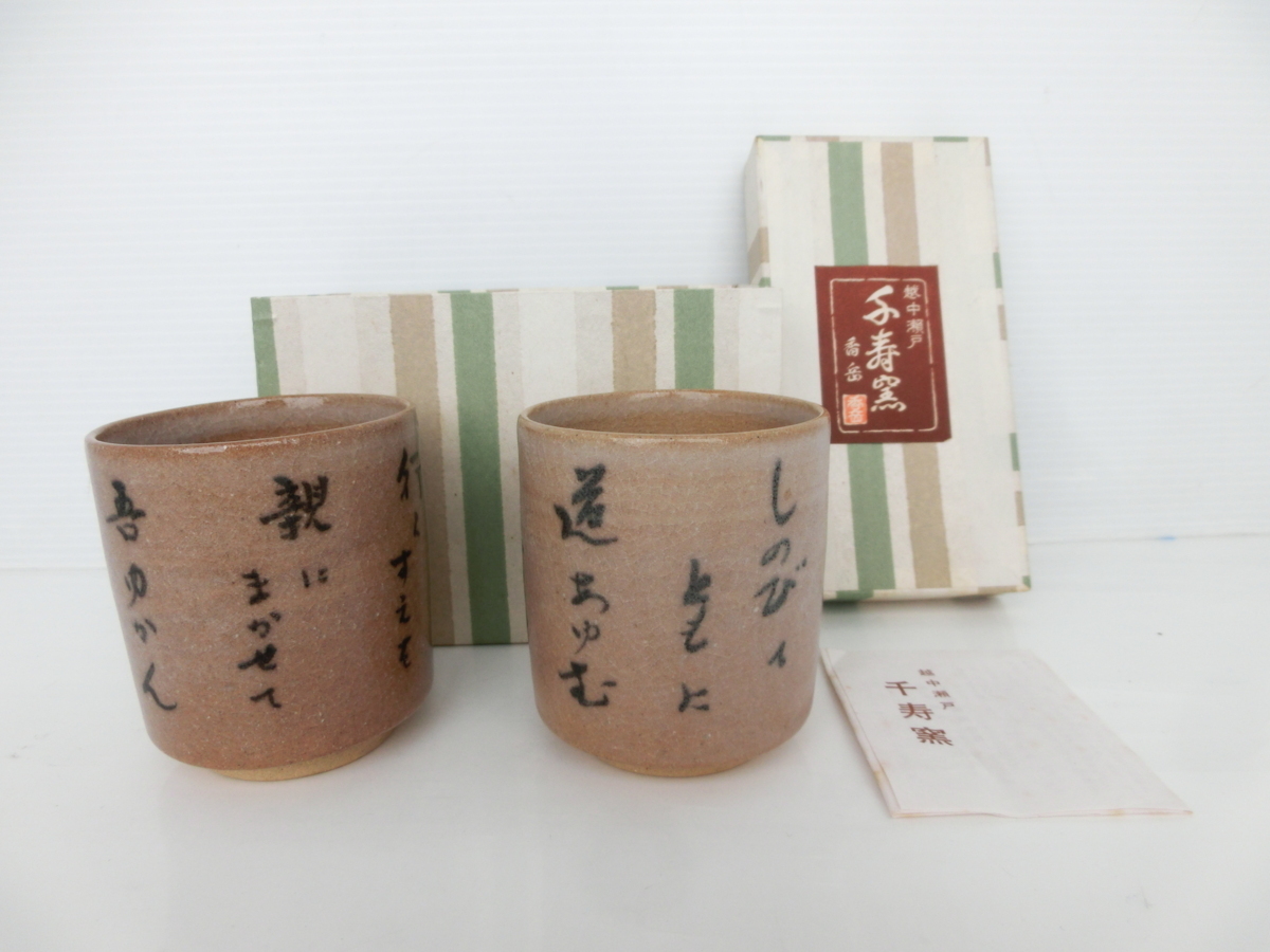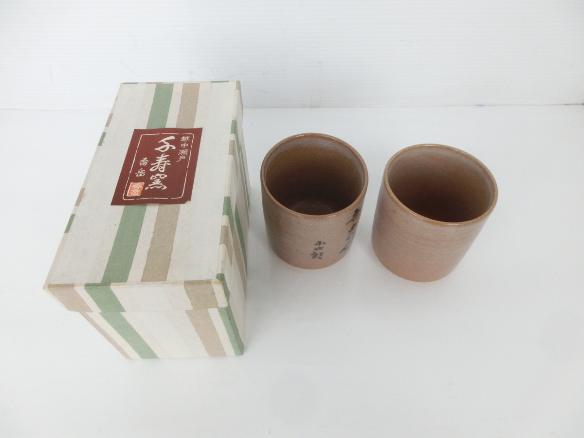●越中 瀬戸焼 千寿窯 香岳 湯呑茶碗2客 小次郎 吉野香岳作 富山 経年保管品