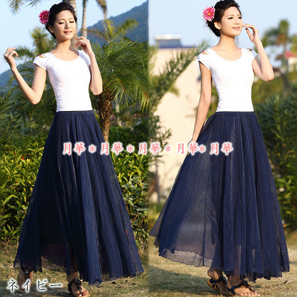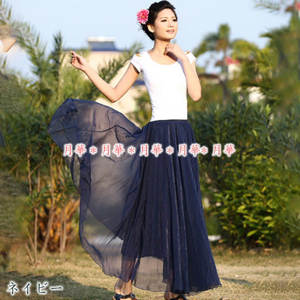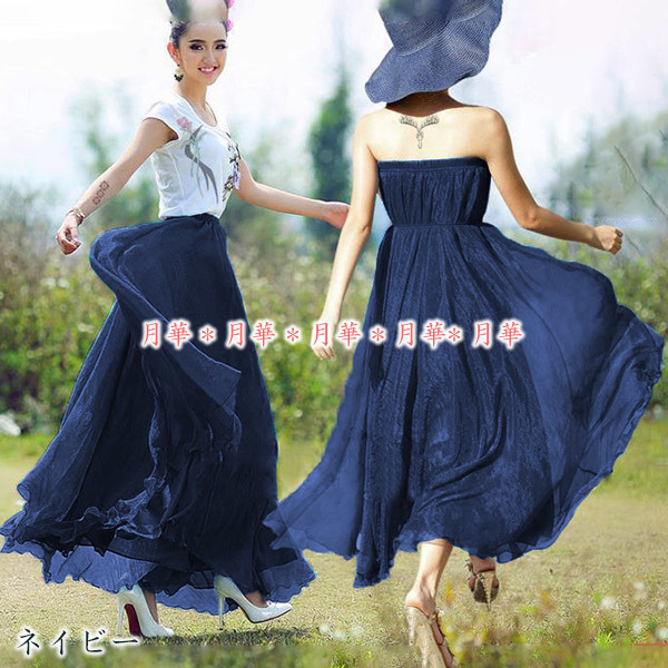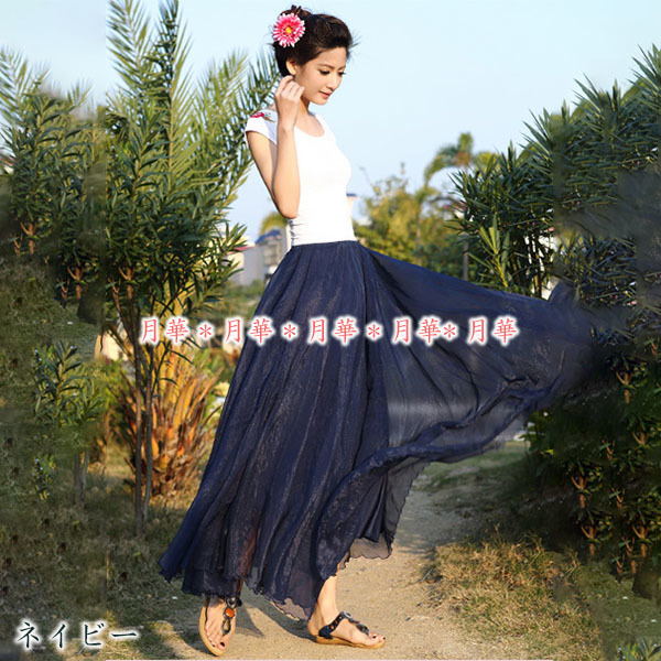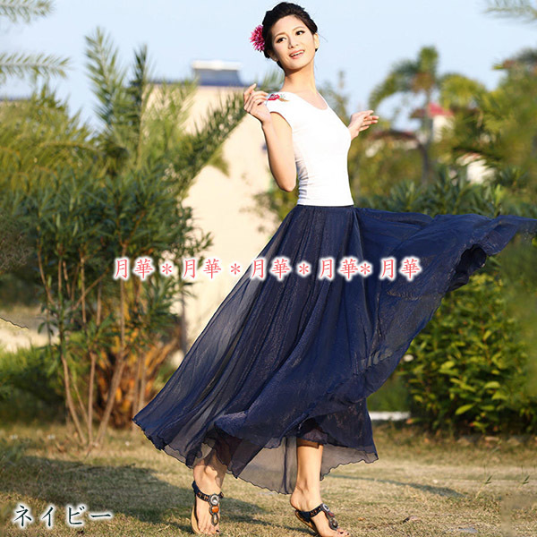 風をはらむ軽やかな素材感、日射しに映える鮮やかな色、歩くたびにゆらゆら、ボリューム感がたっぷり、スカートとワンピースの2WAYで楽しめます。(ウエスト紐は付属しておりません。)