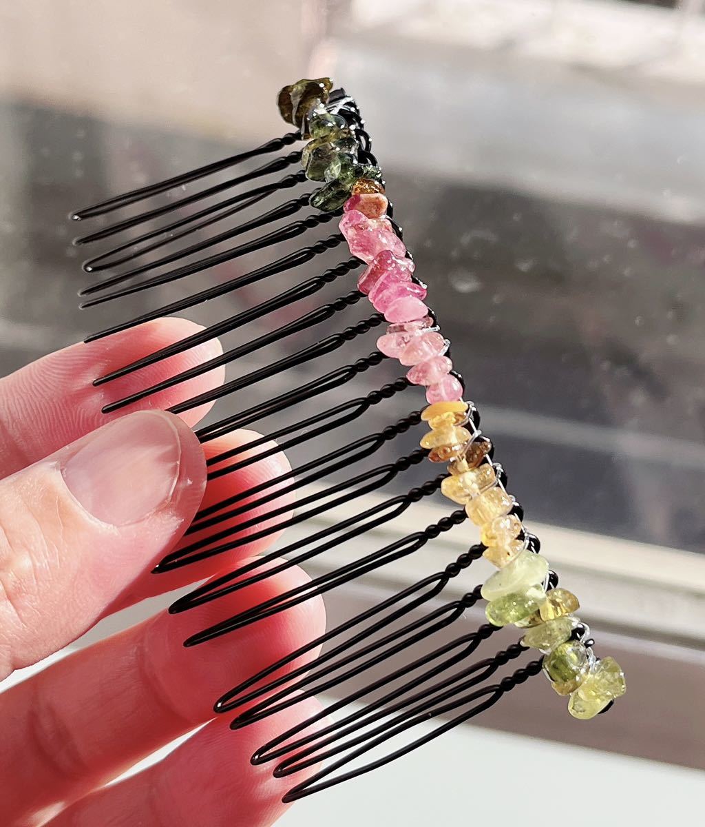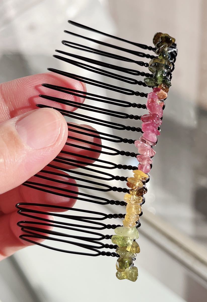 天然石 トルマリンのヘアピンサイズ約:75mm*37mm*厚さ7.4mm;
