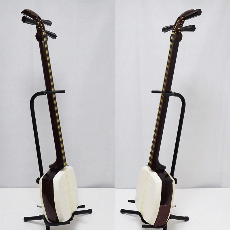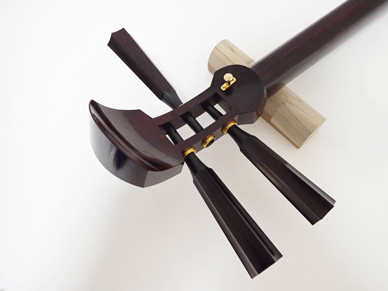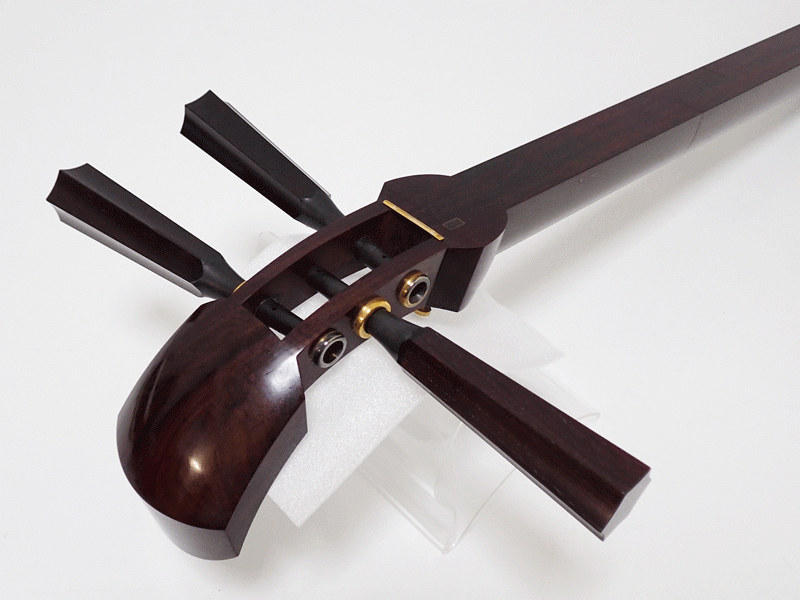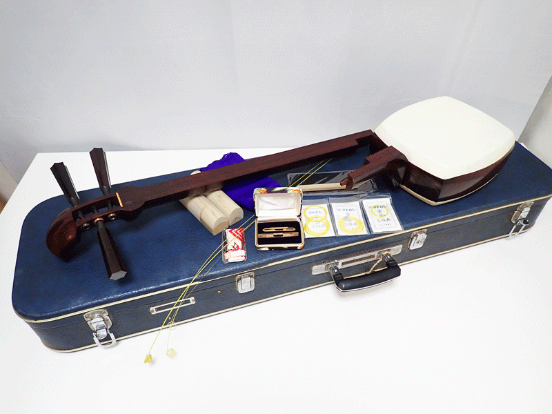 三味線 K9糸巻 紅木 二本溝 トチ目 子持綾杉彫胴 太棹 中古美品 東ザワリ付 金ホゾ ハードケース付 送料無料!!