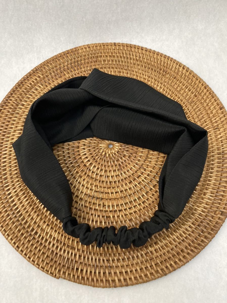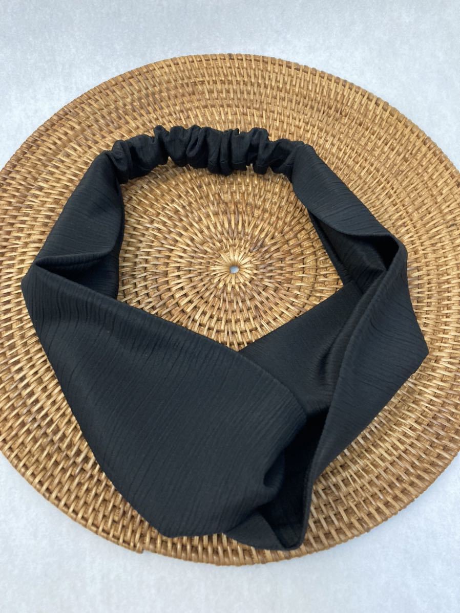 送料無料♪新品! ターバン *黒楊柳 さらさらポリエステル クロスタイプ*  頭囲56㎝~58㎝  CHACAPEE♪