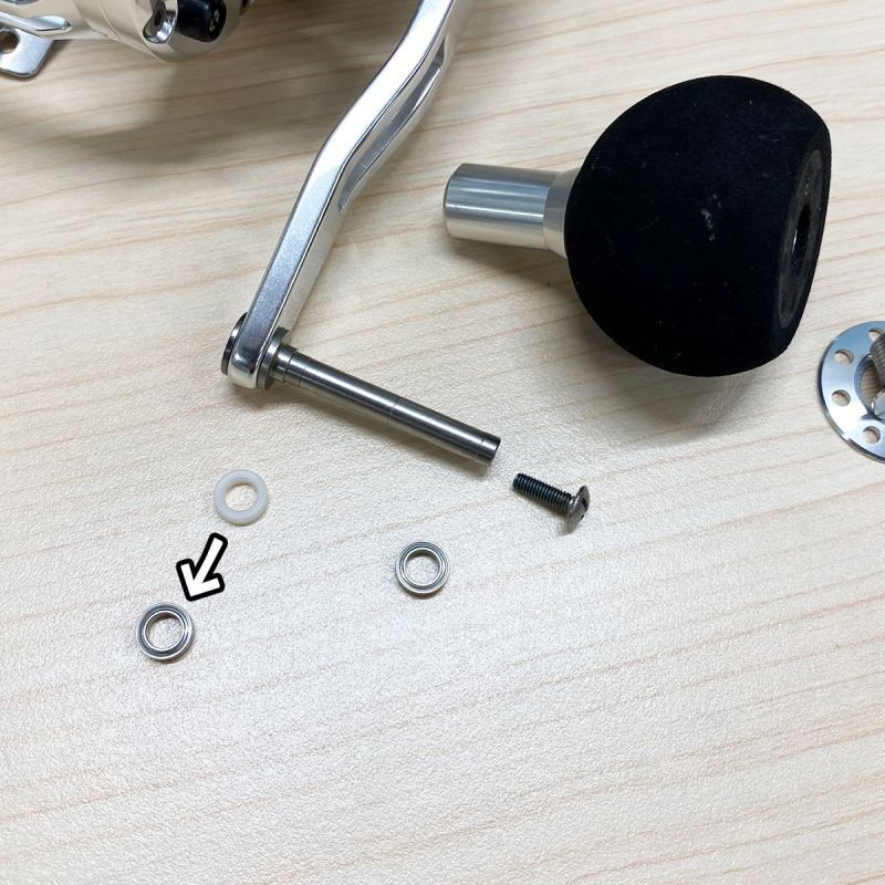 元々純正で入っているベアリングの他に、新たに1個ベアリングを追加して、2BB仕様のハンドルノブになります。