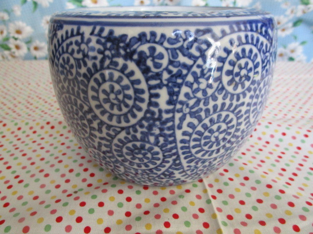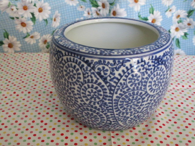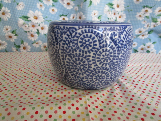 『染付 タコ唐草紋 花瓶 置物』~まるで火鉢のミニチュアのような器 使い方は工夫次第?になります。器のサイズは、横幅(一番広いところ)14cm、高さ10cmになります。採寸の方ですが、多少の誤差はお許し下さい。古いものなので、細かいキズ・擦れなどがありますので、ご理解いただける方のみ入札して下さい。自宅保管につき現状渡しとなります。ノークレームノーリターンでお願いいたします。神経質な方は、入札をご遠慮下さい。新規の方・悪い評価が多い方の入札は、こちらの判断で取り消すことがあります。