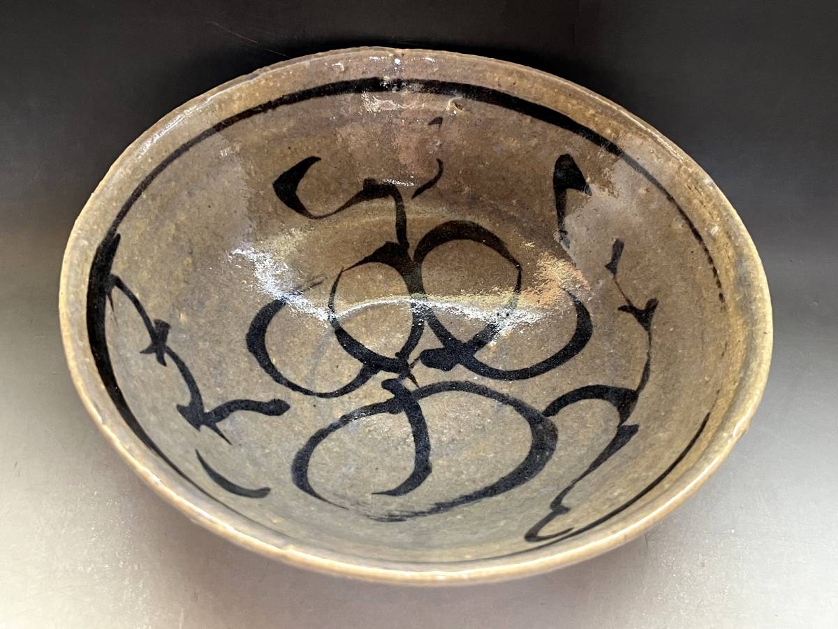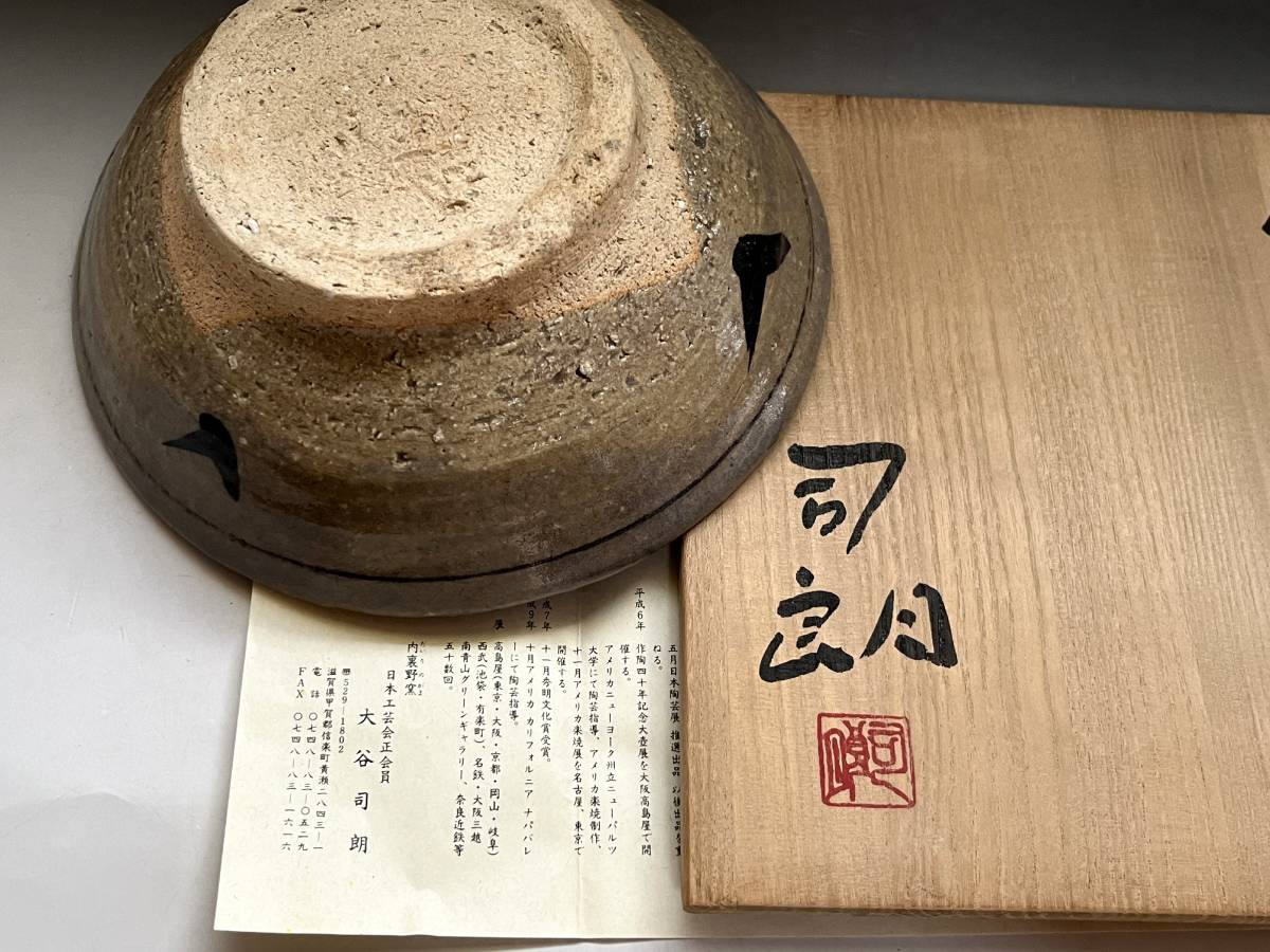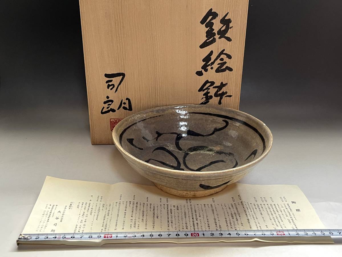 鉢■内裏野窯「大谷司郎」鉄絵鉢 信楽 唐草紋 日本工芸会正会員 信楽焼 作家物 菓子器 平鉢 共箱 古美術 骨董品■