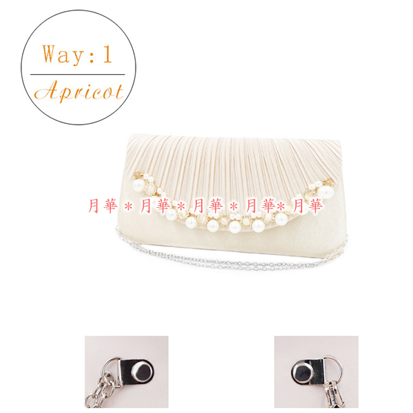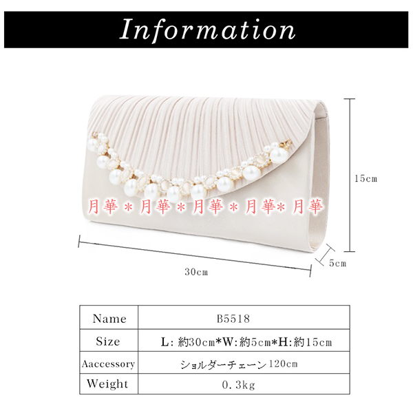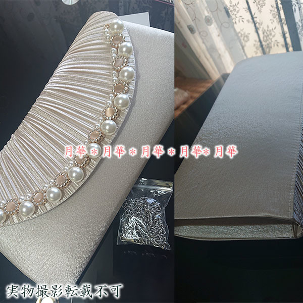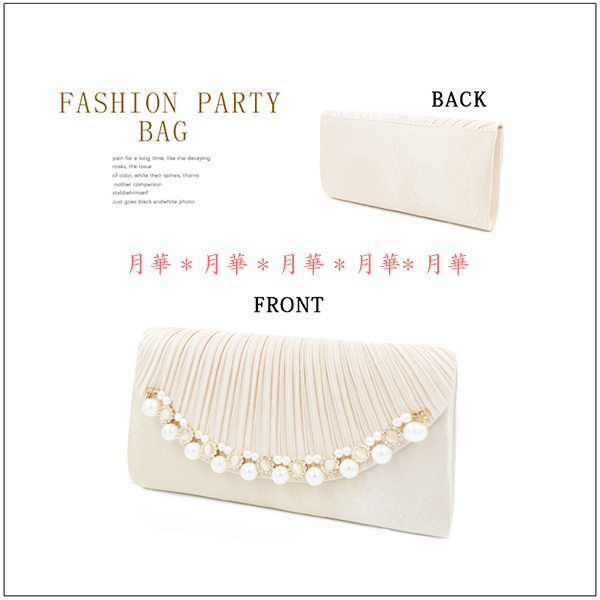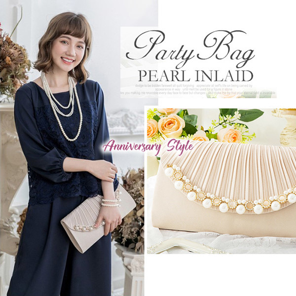 収納力に満足できる大きめなクラッチバッグ が人気ポイントの一つ、可愛いパールが施され、上品感UP!