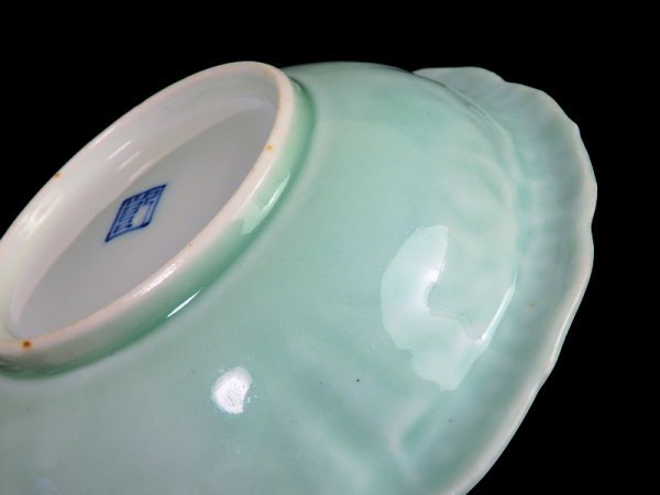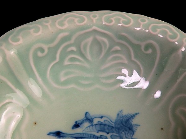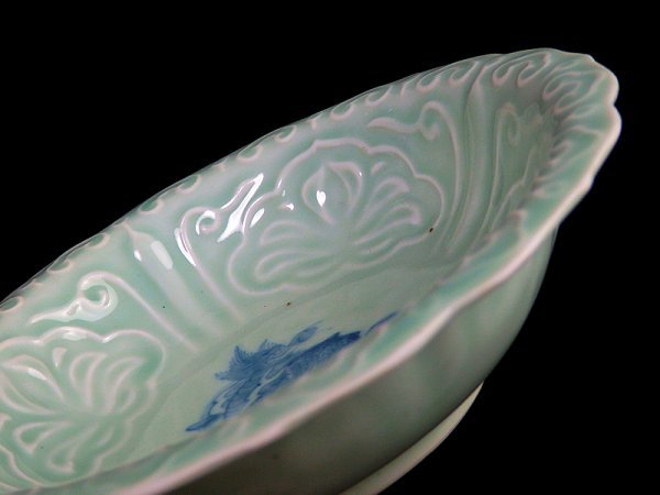 fbfv-E129mS 古伊万里 青磁 陽刻 麒麟の図 膾皿 江戸後期