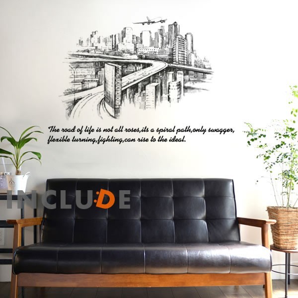 ウォールステッカー ラインアート 手書き風 鉛筆書き 美術 近代 都市 クール 書写 癒し ウォールアート