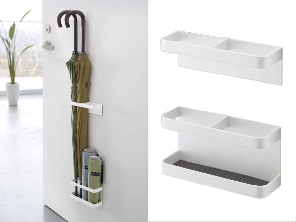| 傘立てを置くスペースはないけど外に出しっぱなしはちょっと…という方へ。 マグネット式のアンブレラスタンドです。 ドアなどに取り付けてさっと傘を収納する事ができます。 4本の傘を収納できます。 |