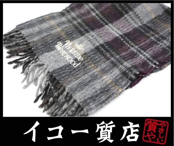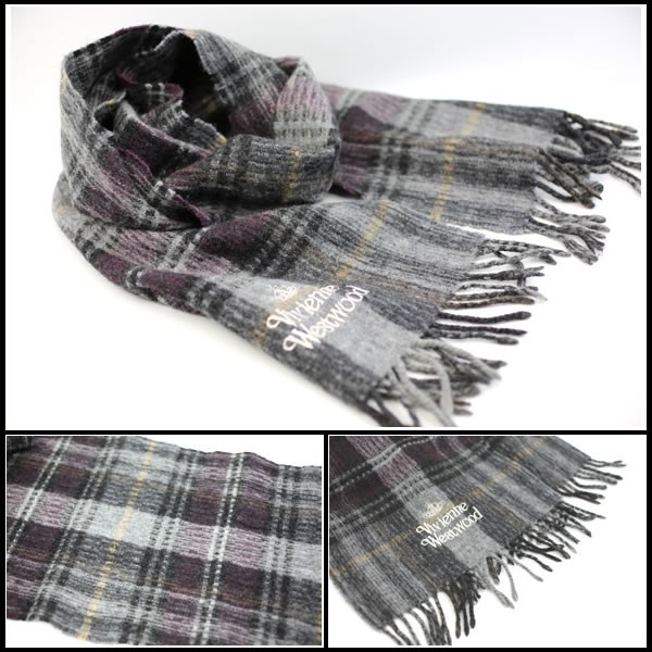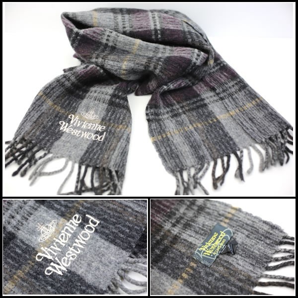 | 商品名 | ヴィヴィアンウエストウッド マフラー ウール×アクリル グレー系チェック柄 未使用・保管品 |
