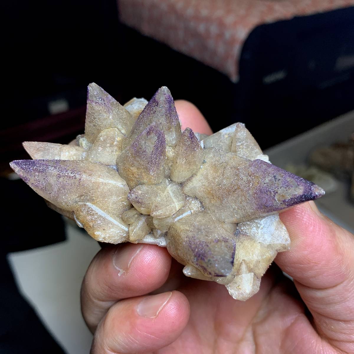 最近産出した形状の方解石で、以前は全く目にすることのなかったものです。たくさんは出ていないようで、高額であったため、一つしか仕入れられませんでした。すぐに絶産すると思われます。