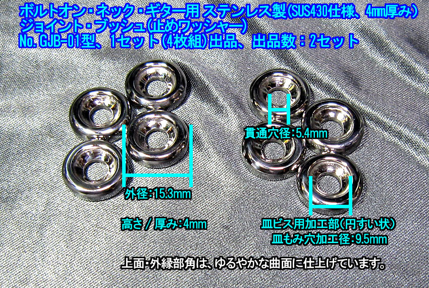 *手作り品 ボルトオン・ネック・ギター仕様向け数量限定販売品 ジョイント・ブッシュ ステンレス製SUS430仕様 1セット/4枚出品:出品数2set