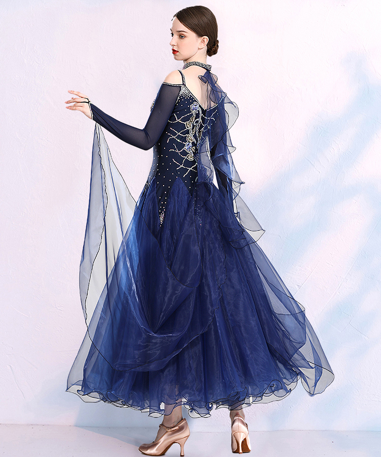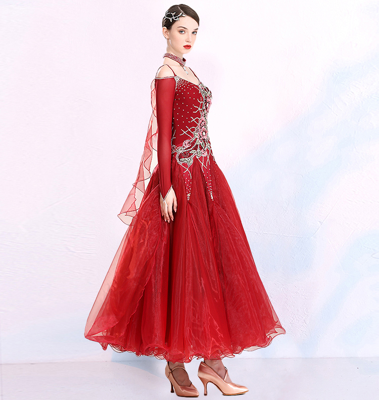新作 レディース社交ダンス衣装 ワルツダンス競技ドレス モダン2色選択 花柄飾り 良品 サイズS~3XL