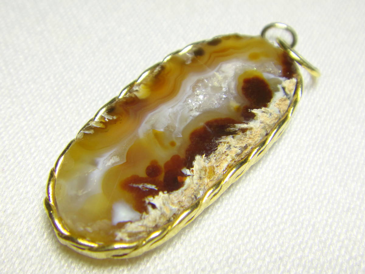 天然石 瑪瑙 メノウ 金色枠デザイントップ