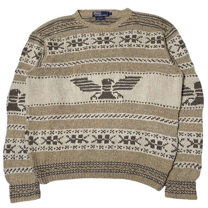 【90’s】ラルフローレン ネイティブ柄 シルク混 ハンドニット ナイガイ時代