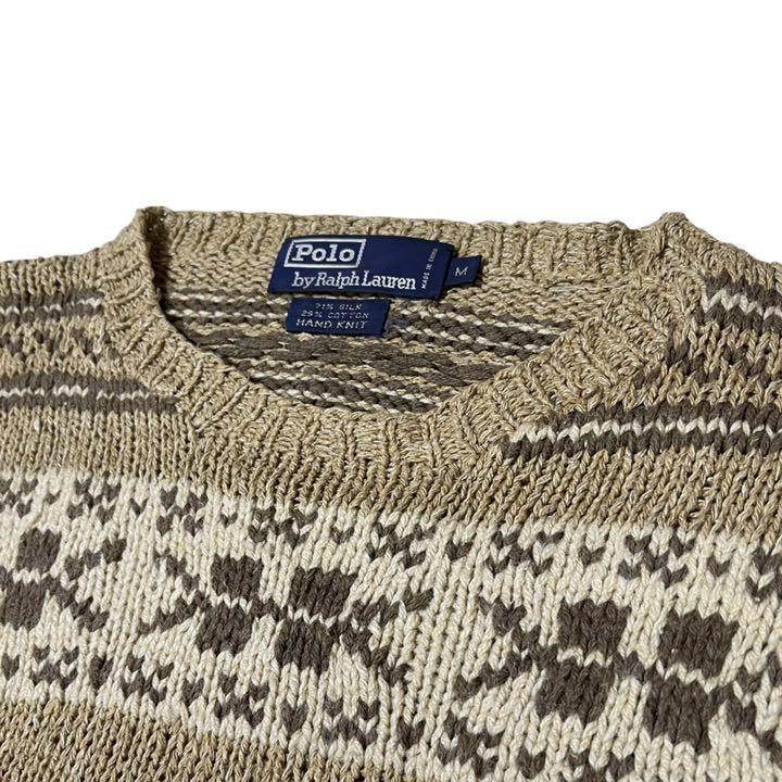 【90’s】ラルフローレン ネイティブ柄 シルク混 ハンドニット