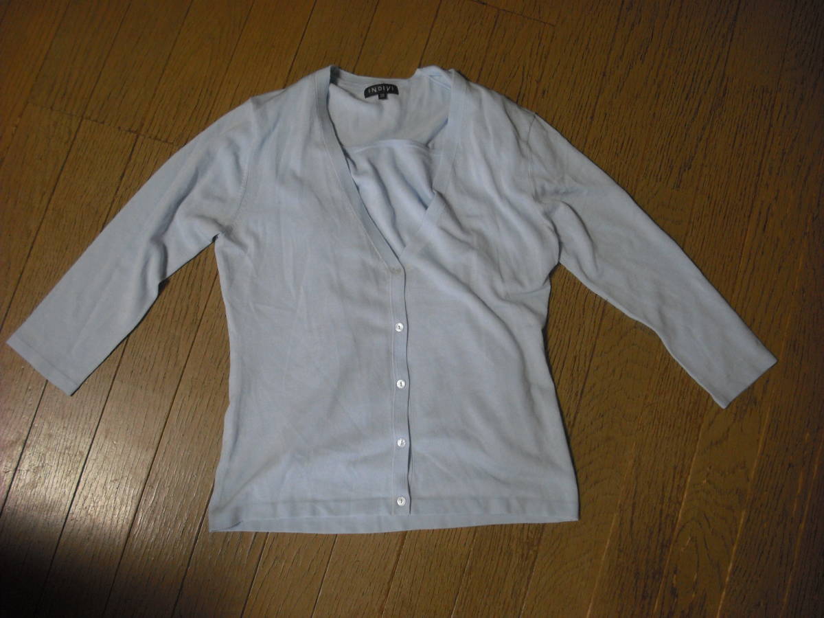 写真のような水色のアンサンブルになります。 前ボタン5個あり。 サイズは38 絹45% アクリル45% ナイロン5% ポリウレタン5% (株)ワールド Made in china おおまかですが・・・インナーは着丈48cm、身幅36cm、アウターは着丈51cm、身幅43cm、袖丈41cmくらいです。 写真の状態でメジャーで測っています。 私見ですが…お色はやわらかい水色っぽいです。 保管中の汚れ、畳みジワ、経年劣化、他商品と触れあっているため糸クズの付着などございますし、中古であり、個人所有になりますので糸のほつれ、汚れやスレなどの痛みがある場合もございます。 現状でよろしくお願いします。 約262g 簡易包装の規格内の定形外郵便500gかレターパックライトで発送予定です。 |
