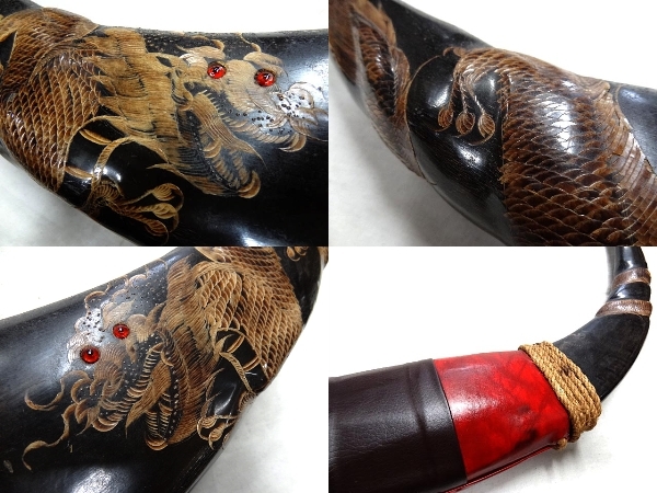 アンティーク 骨董 水牛 角 剥製 インテリア ディスプレイ 龍 ドラゴン 彫り 加工 細工 本物 ビンテージ 置物 オブジェ レア 希少 ホーン
