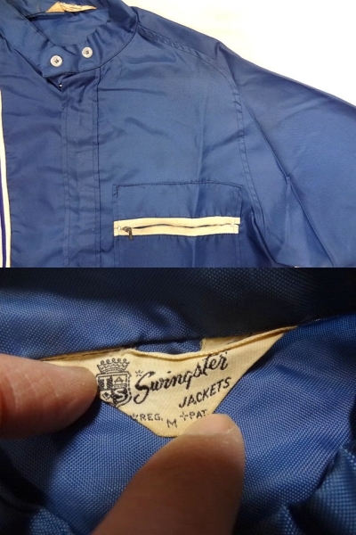 ビンテージ SWINGSTER スウィングスター 70S ドラッグ レーシング 青 ナイロン ジャケット 白 2本 ライン ライダース レア 希少 珍品 80S