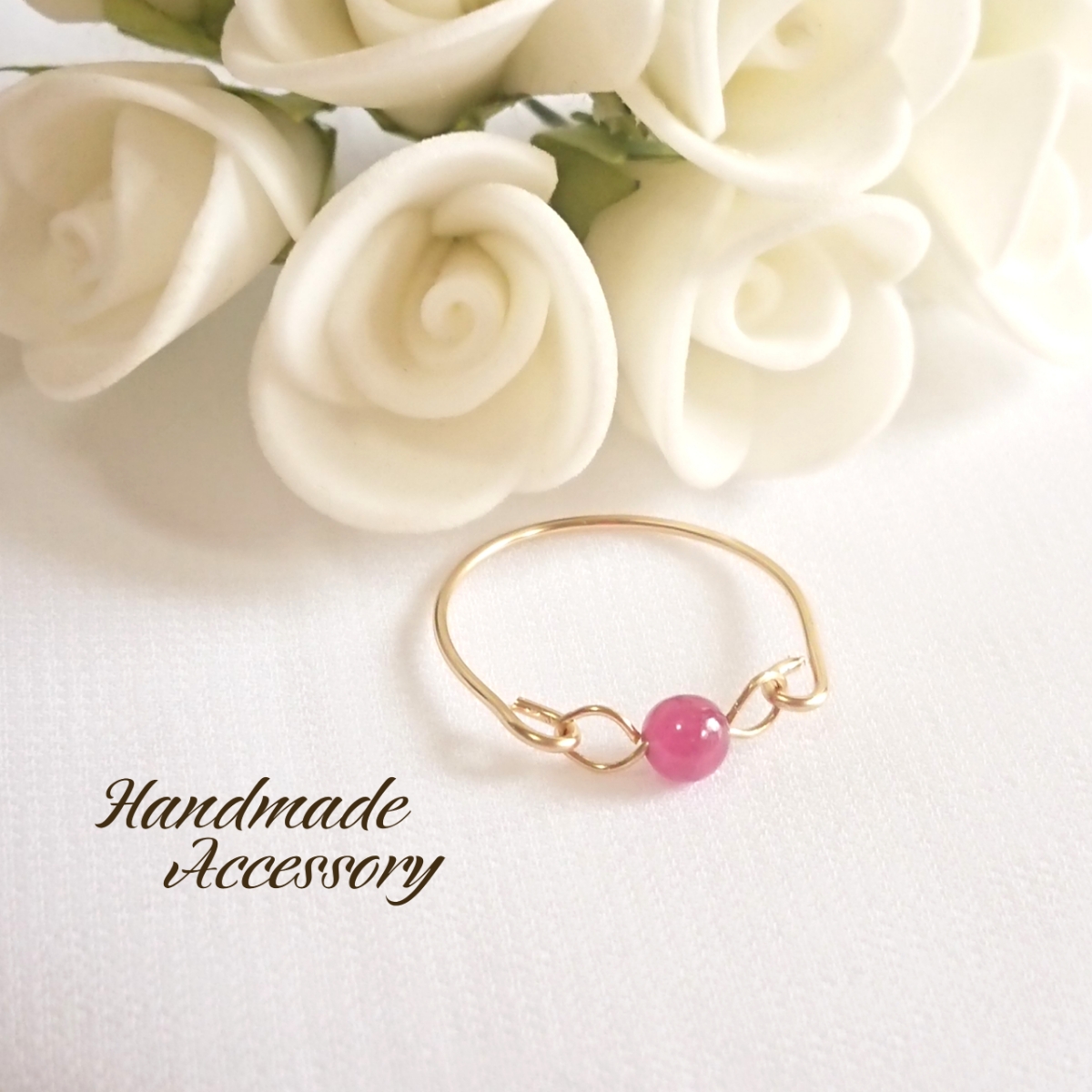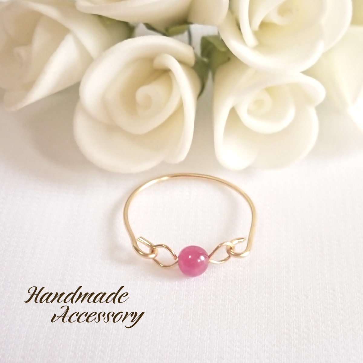 3mm玉のルビーを1粒使用し、14kgfワイヤーで仕上げたワイヤーリングです。