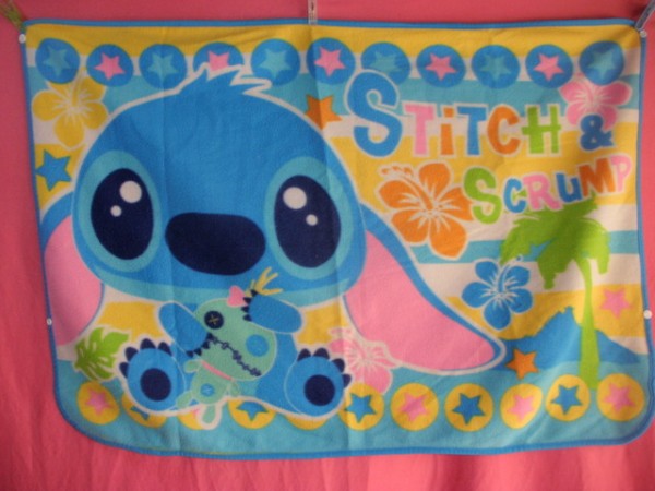 USED スティッチ ひざ掛け(ホックボタン付き) ブルー系