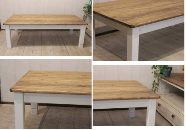 ハンドメイドのアンティークホワイト風ローテーブルです。
