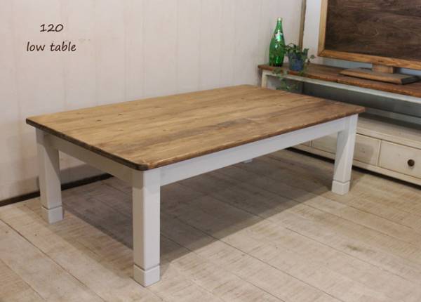 ☆ハンドメイド☆アンティークホワイト風シャビーなローテーブル 120☆