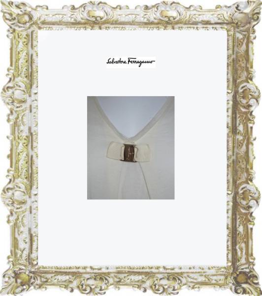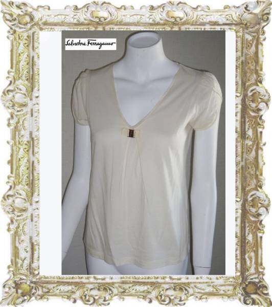 フェラガモ アイボリー VARAリボン パフスリーブ半袖カットソーXS