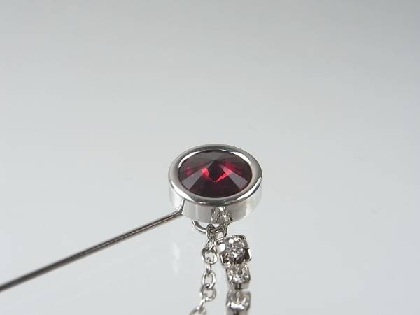 落ち着いた深みのあるシャムレッドカラー・スワロフスキーカットガラスのラペルピン。