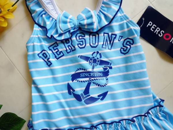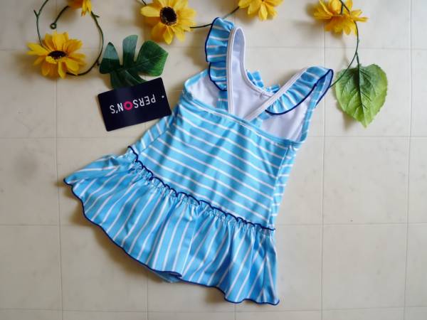 71-4【新品】パーソンズワンピース水着《青ボーダー》110cm