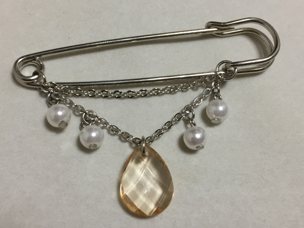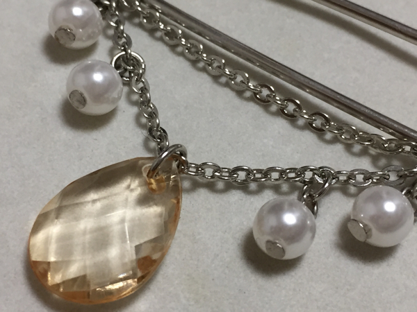 揺れる雫形ビーズとフェイクパールのデザインブローチです。美品です。