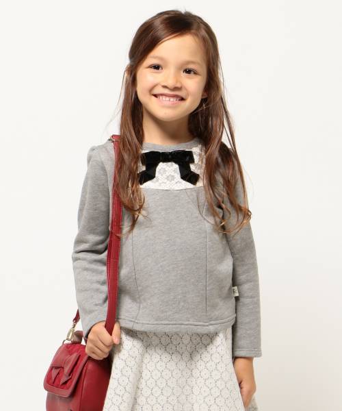 胸元にリボンとレースをあしらい、上品ながらも目を引く華やかなデザインに仕上げたトレーナー。