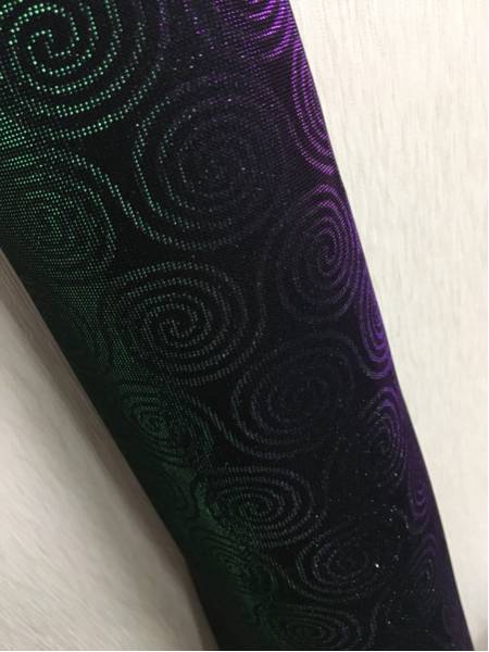 イギリス製高級グリッター生地、幅140cm×1m、渦巻き柄プリントのホログラムカラーで、光の当たり具合で色が変わる大変珍しい生地です。
