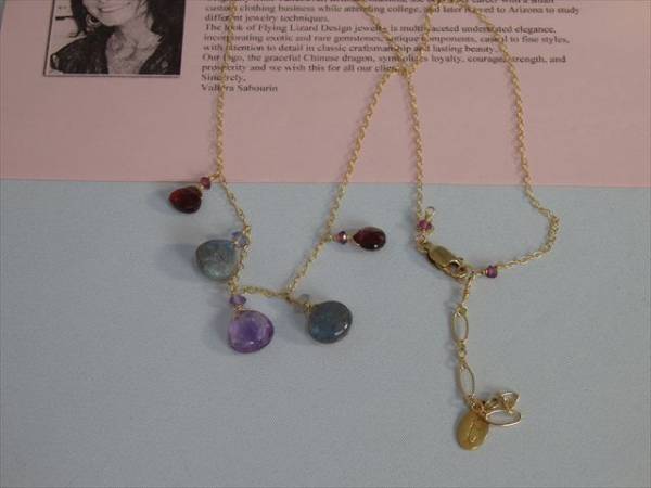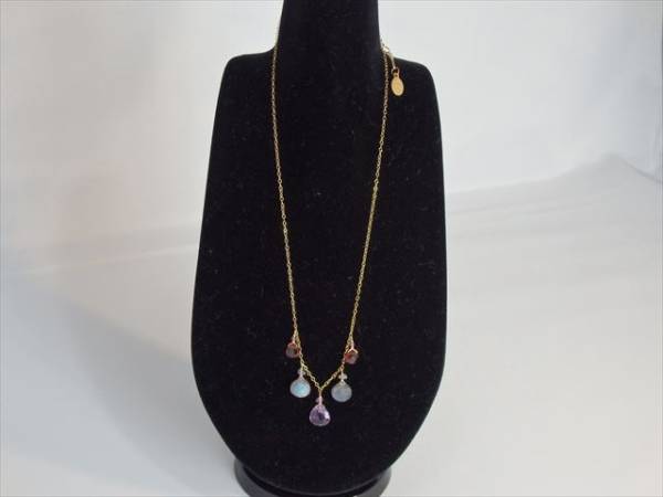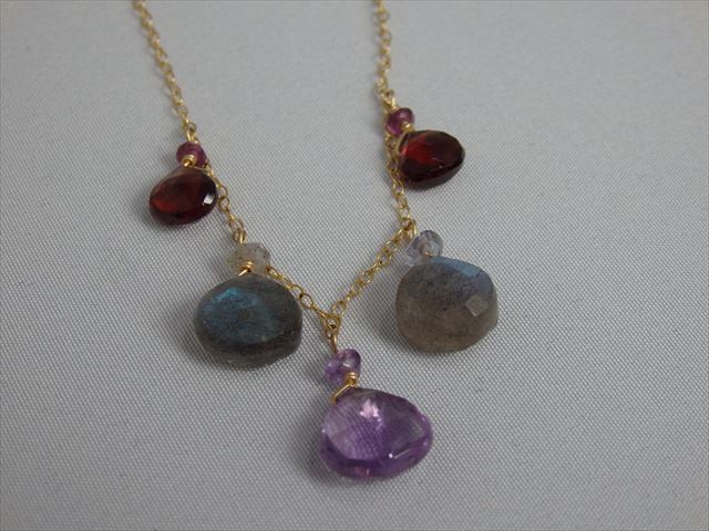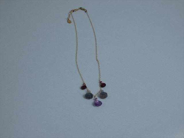 サイズ:40cm+アジャスター5cm 素材:チェーン真鍮/メッキ    天然石:アメジスト(紫)・ガーネット(赤)・ラブラドライト(グレー)