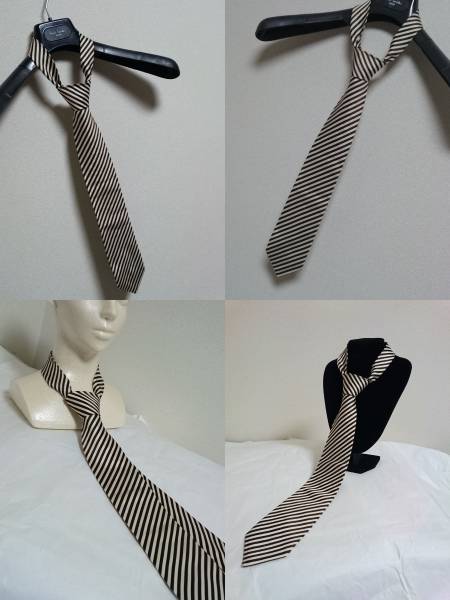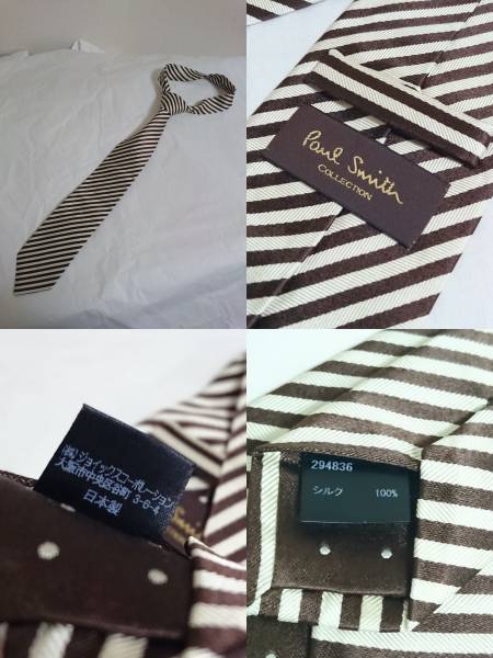 正規未 Paul Smith ポールスミス ストライプナロータイ茶×白 ブラウン×ホワイト シルク細ネクタイ 8cm プライベート~ビジネスOK 男女兼用