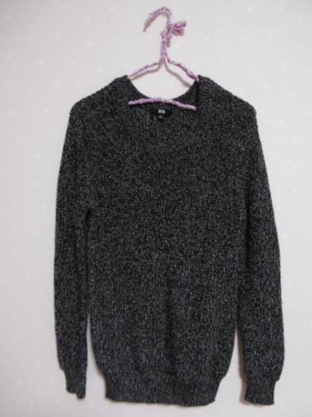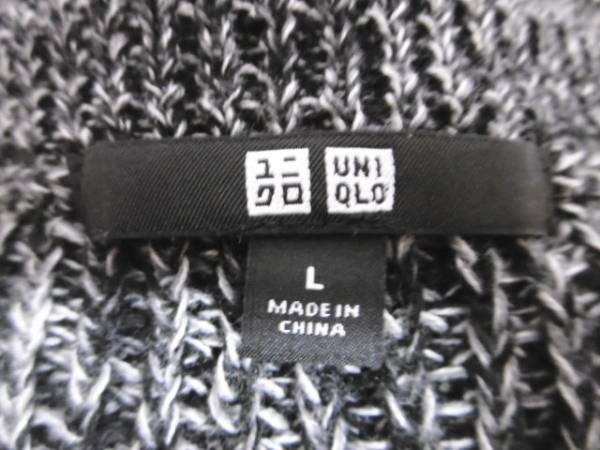 ★ ユニクロ ★ コットン ラウンドネック メンズセーター L 黒 (0220)
