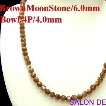 【新品】【上質】【SV:高級天然ブラウンムーンストーン/K14GF4mmボール デザインネックレス】6.0mm/43.5cm