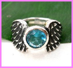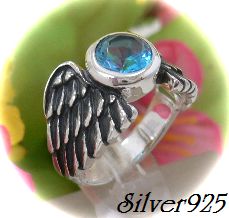 シルバー925銀のブルージルコニア付フェザー ピンキーリング/3号ラスト1個