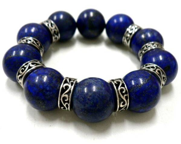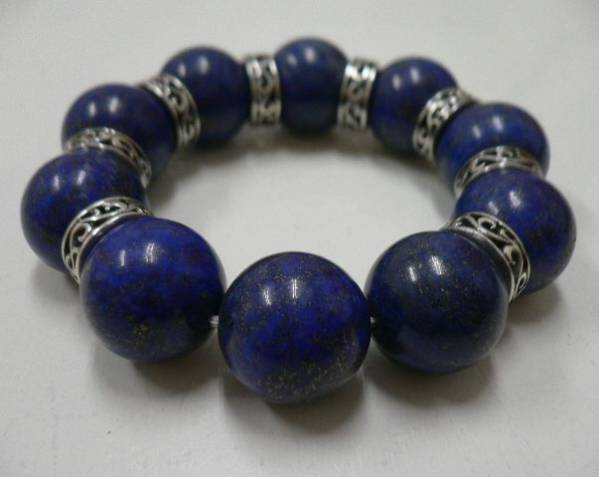 シルバー925銀パーツ×天然石ラピスラズリ18mm玉 数珠ブレス/1点のみ