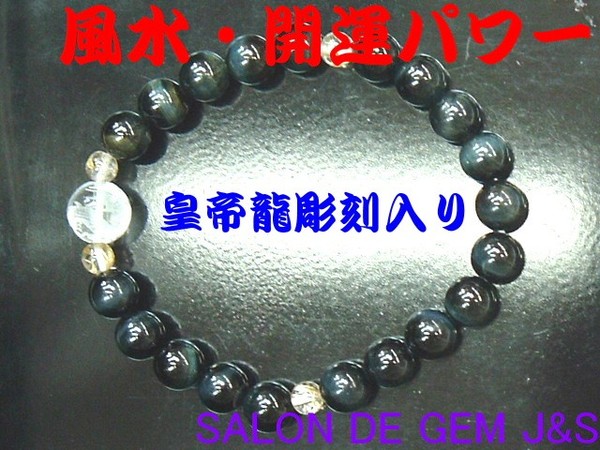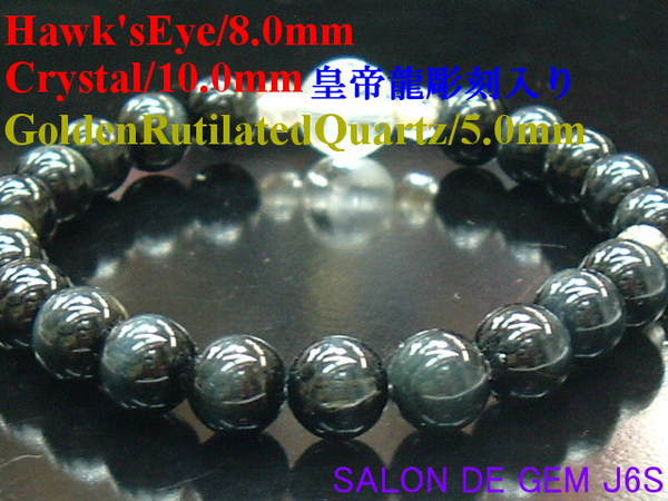 【皇帝龍】【財運:仕事運】【高級天然ホークスアイ/天然クリスタル/ゴールデンルチル 2025年風水・開運ブレスレット】10.0-5.0mm/16.5cm