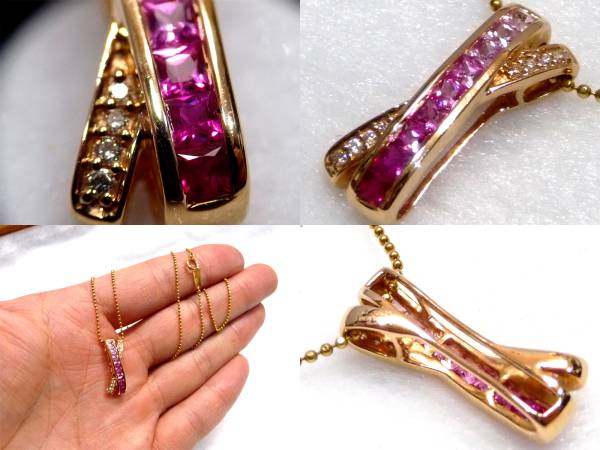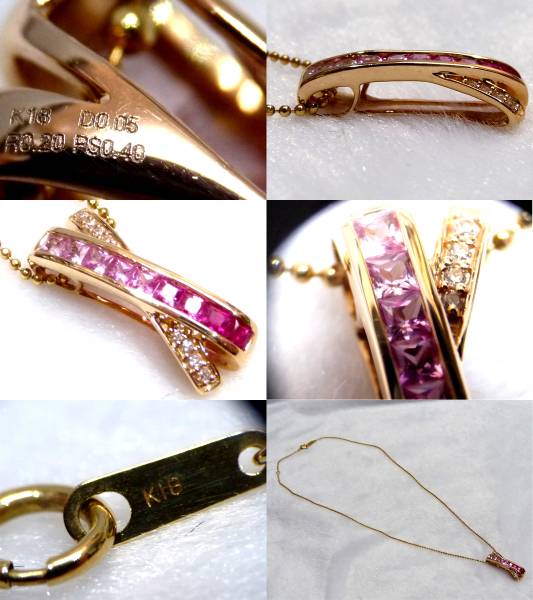 K18 ピンクサファイア ダイヤ ルビー 3種石 ペンダント&ネックレス 中古良品