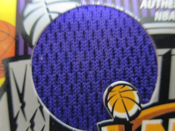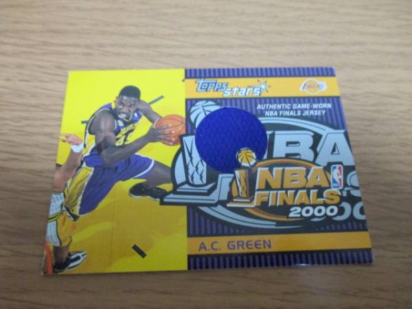 ロサンゼルス・レイカーズなどで活躍、歴代1位の14シーズン全試合、出場記録した鉄人、A.C.GREENが2000年のレイカーズとペイサーズのNBAファイナルのペイサーズのホーム3、4、5戦のどれかのゲームでグリーンが使用したアウェイ・ユニホームの一片がインサートされたカードです。