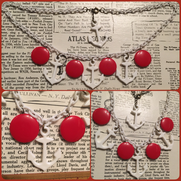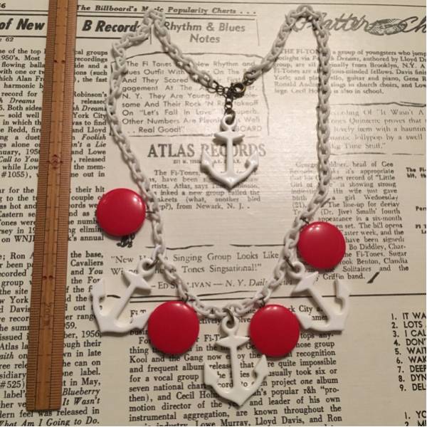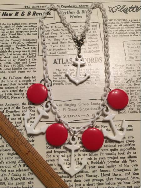 海外や日本で探したパーツでビンテージスタイルのマリンネックレスを作りました!50sのピンナップスタイルに!