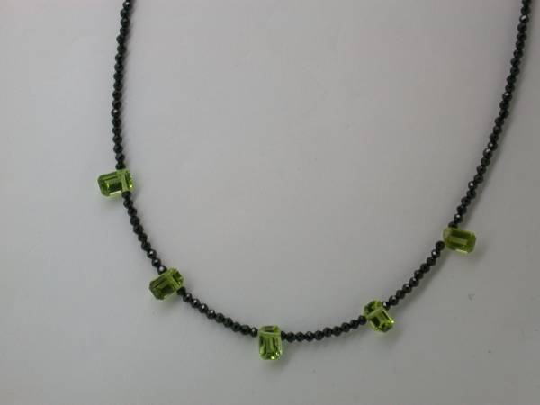 | ネックレス | 40cm,ペリドット4石、ブラックスピネル2.0mm重量3.7g |