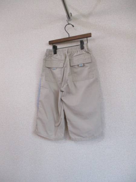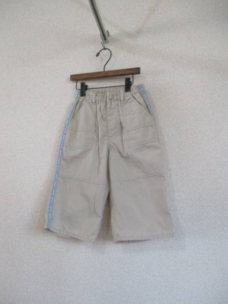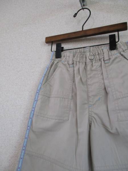 商品紹介 | サイドに水色を基調としたラインが入ったベージュのパンツです。 カーゴっぽい形で、ひざ部分・横に切替えが入っています。 《素材》 ポリエステル65% 綿35% |