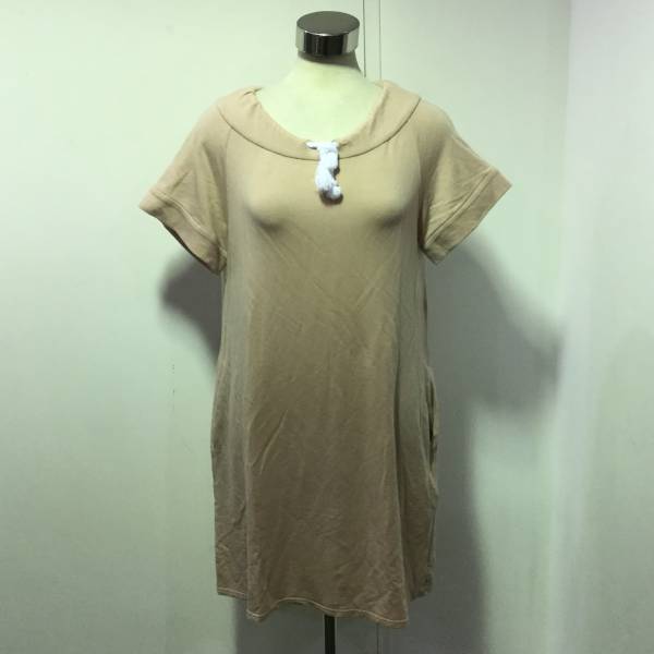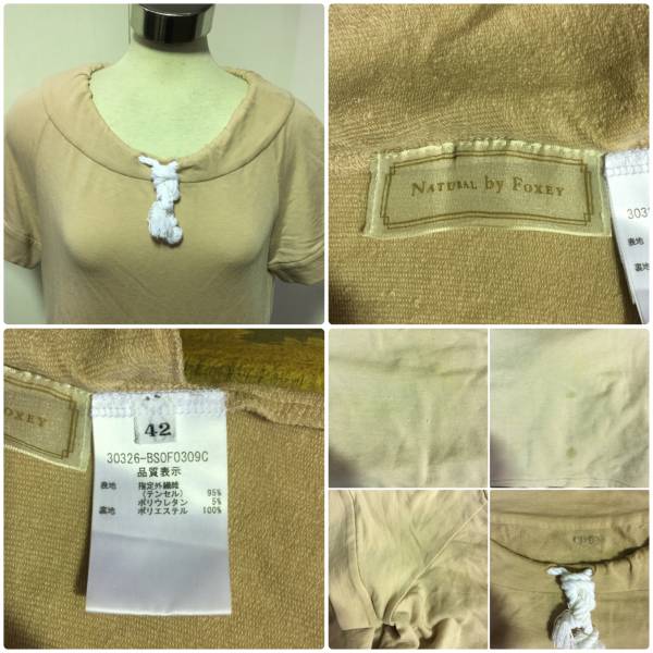 サイズは42、素人平置き実寸・総丈/約81cm、身幅/約46cm、肩幅/ラグランスリーブのため計測不可、袖丈/約8cm(脇下から計測)、裾幅/約61cmになります。