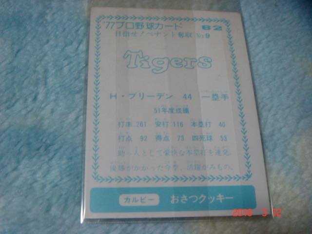 カルビー '77年 プロ野球カード 『目指せ!ペナント奪取』NO.82(H・ブリーデン/阪神) 青版