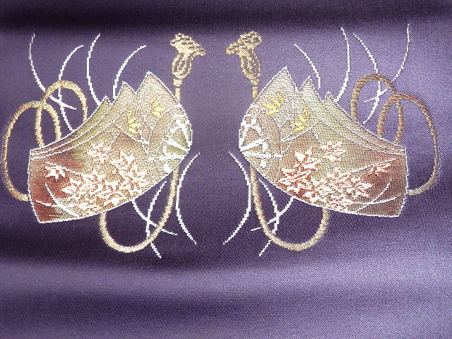 SAI222 「化繊」名古屋帯 お太鼓柄 未使用・未仕立て 品質表示証紙付 | |||
