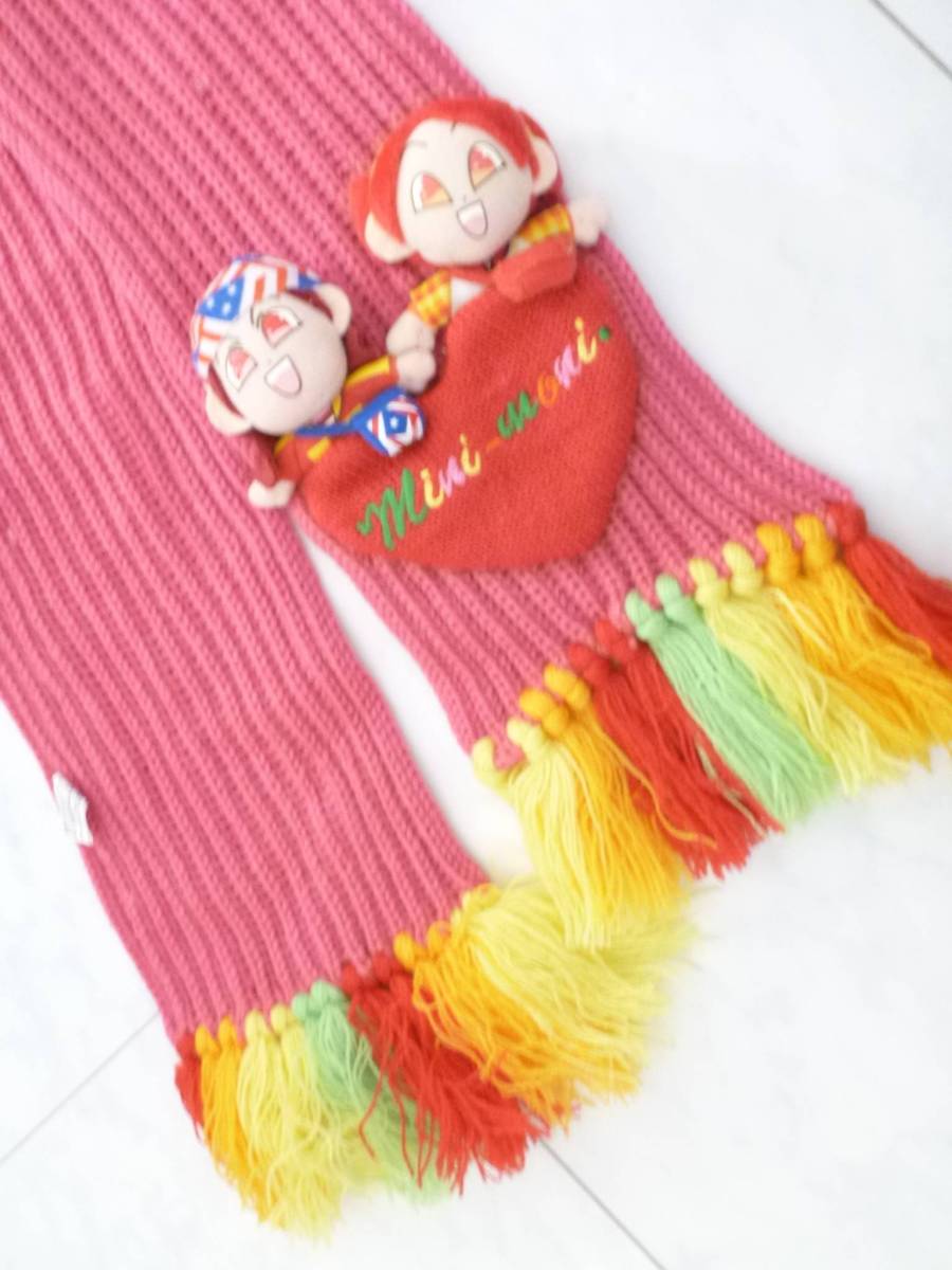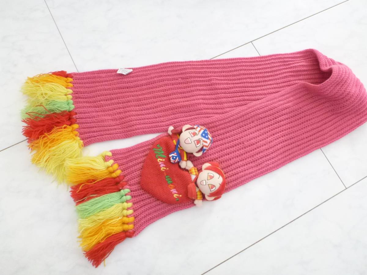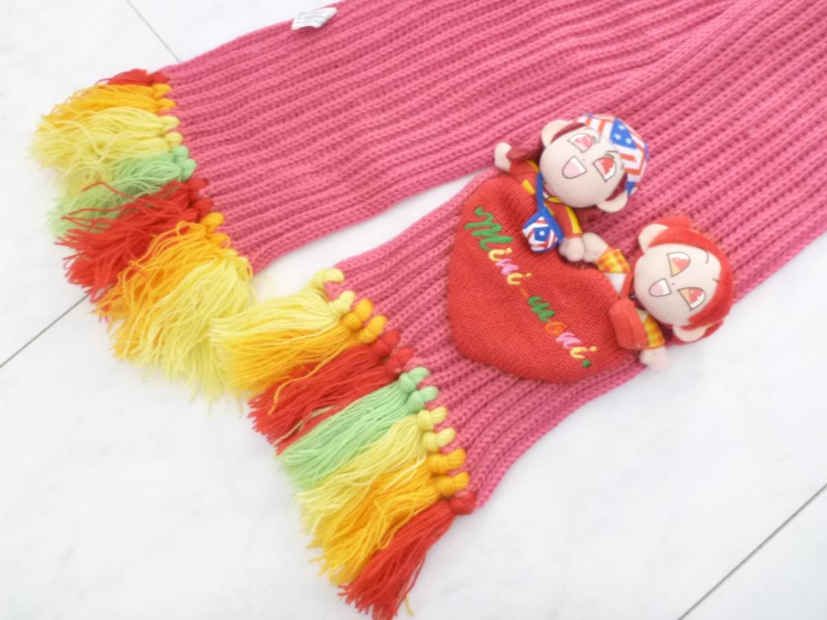 美品 カラフル マフラー ピンク×赤×オレンジ×黄×黄緑 女の子
