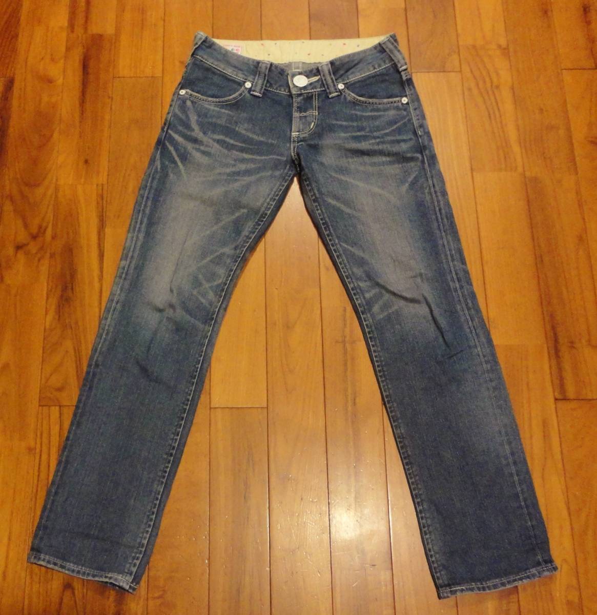 リーライダース×アナザーエディションのデニム(ジーンズ)、97135です。色はインディゴブルーです。USEDですが状態は良いです(10段階中8程度)。生地は綿100%です。布パッチ、ジッパーフライ、チェーンステッチです。正規品です((株)エドウイン商事、日本製)。サイズはSでウエストは重ねずに平置きで約77cm、ヒップ約100cm、股上約20cm、股下約77cm、股下15cmのふともも部分約48cm、裾まわり約36cm、重量約500gです。発送はゆうパケットポストになります。
